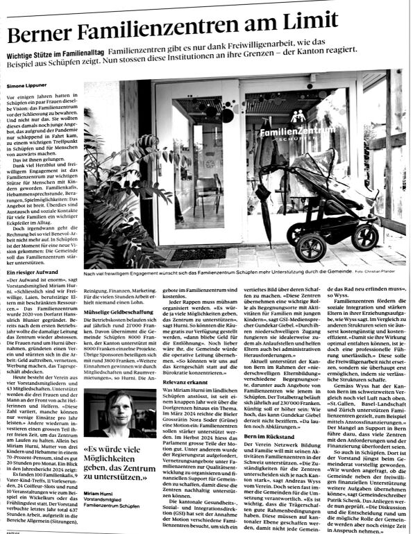 Warum Familienzentren Eltern stärken und gesellschaftlich so wertvoll sind. Ich durfte meine Sicht einbringen: "Familienzentren fördern die soziale Integration und stärken Eltern in ihrer Erziehungsaufgabe, wie Wyss sagt. Im Vergleich zu anderen Strukturen seien sie äusserst kostengünstig und kosteneffizient. «Damit sie ihre Wirkung optimal entfalten können, ist jedoch eine professionelle Führung unerlässlich.» Diese solle die Freiwilligenarbeit nicht ersetzen, sondern sie überhaupt erst ermöglichen, indem sie verlässliche Strukturen schaffe."